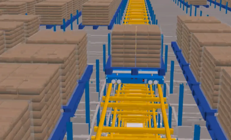 A warehouse with a four way radio shuttle